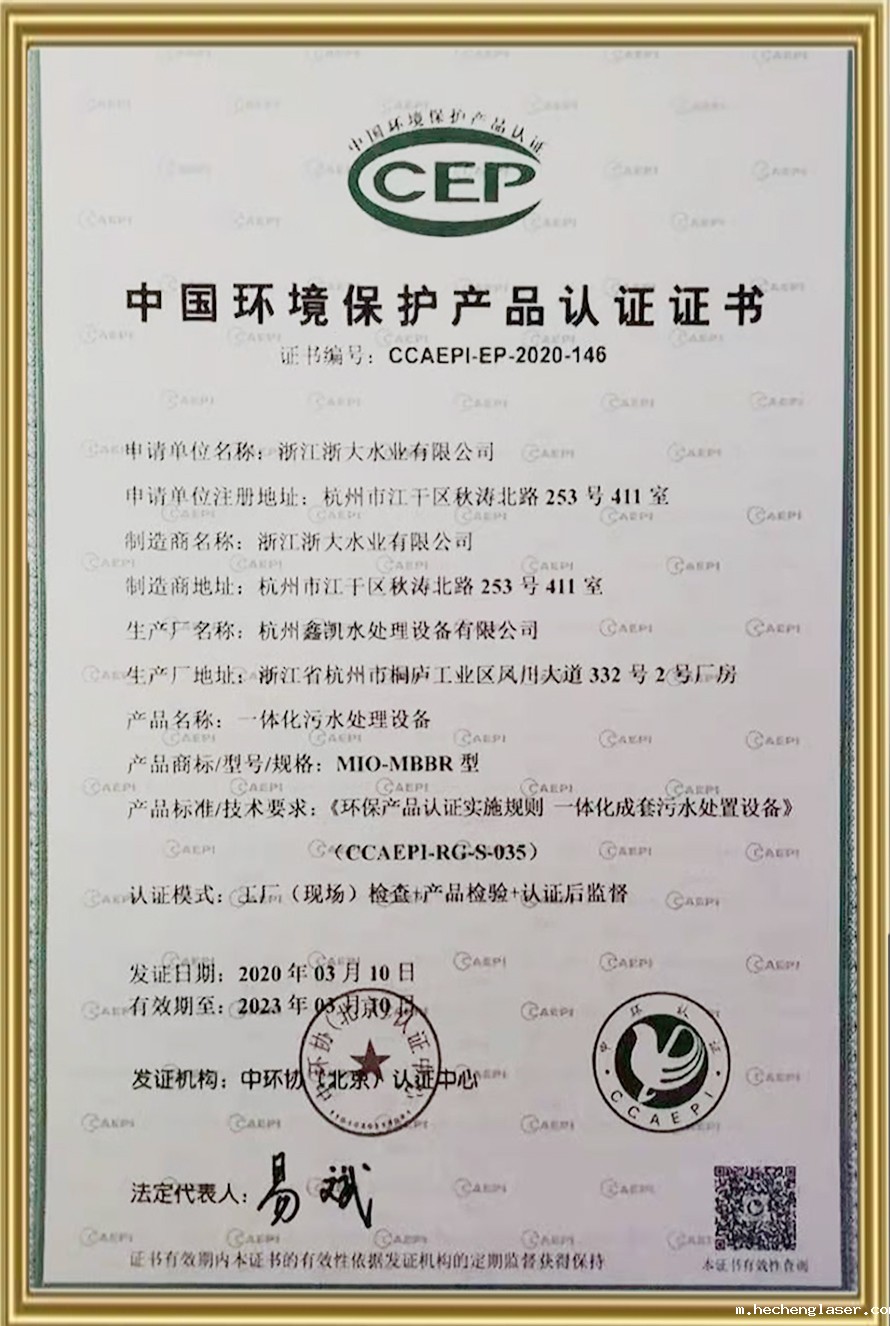 中国环境保护产品认证证书